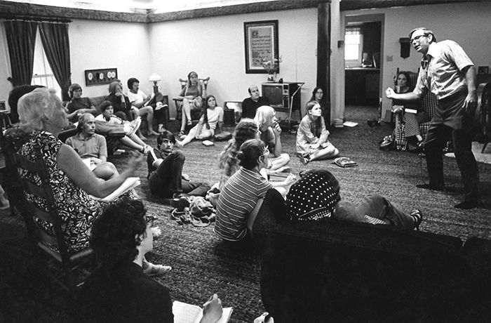 He explained why good theology was vital to all of us. Also, that God's truth wasn't just true in the church, but also in the classroom and the marketplace. In the first years of the CCO, our training consisted of two weeks at the Study Center being taught by RC and a few others. And who can forget R.C.'s weekly "Gab Fest" in his living room (above), where he skillfully tackled any questions or issues.